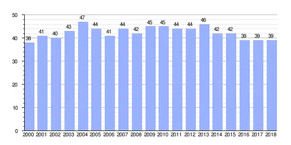 | Gráfica de evolución demográfica de Gándara entre 2000 y 2018 |