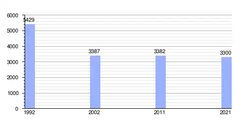 Hasta 2021 la población era de 3300 habitantes,[2] con una densidad de población de 52,75 habitantes por kilómetro cuadrado.[2]