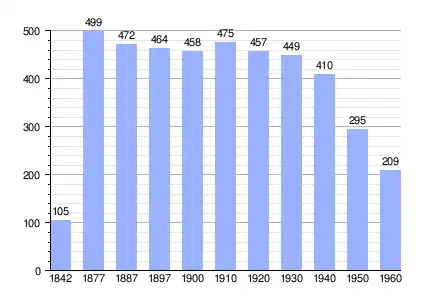 | Gráfica de evolución demográfica de Gésera[3] entre 1842 y 1960 |