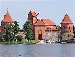 - Castillo de la isla Trakai,[5] fortificaciones de la segunda mitad del siglo XIV, palacio desde 1410.