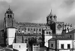 Las órdenes mendicantes (franciscanos, dominicos, carmelitas, agustinos) impulsaron el nuevo estilo con sus construcciones conventuales ("gótico mendicante")[1] en las ciudades portuguesas de los siglos XIII y XIV (iglesias franciscanas y dominicas de Santarém y Guimarães, Mosteiro de Santa Clara-a-Velha -Coímbra, hoy en ruinas-, los conventos de San Francisco y Santa Clara -Vila do Conde- el convento do Carmo -Lisboa, hoy en ruinas y usado como museo arqueológico-, etc.) También las órdenes militares contribuyeron a la expansión del Gótico (iglesia de São João de Alporão -Santarém-,[2] monasterio de Leça do Bailio -caballeros hospitalarios-,[3] iglesia de Santa Maria dos Olivais[4] -Tomar, templarios-). Algunas catedrales portuguesas también fueron construidas en estilo gótico (Catedral de Évora, siglos XIII-XIV, Catedral de Silves, siglos XIV-XV, y Catedral de Guarda, finales del siglo XIV-XVI).