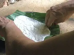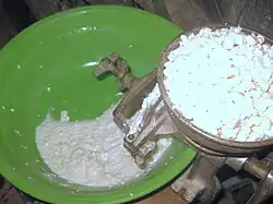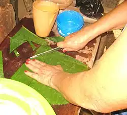 Rallando los granos de maíz (extracción del grano de maíz de la mazorca)