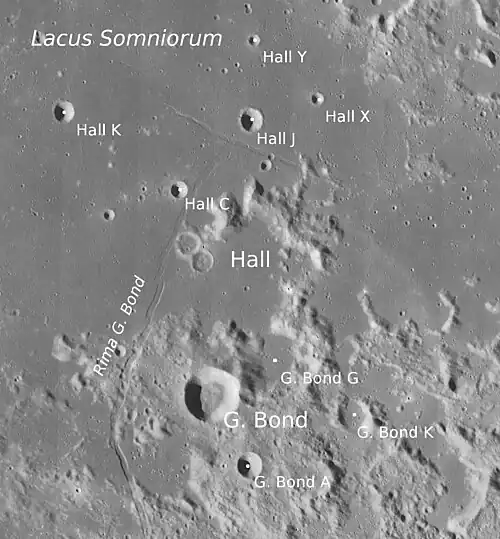 Por convención estos elementos son identificados en los mapas lunares poniendo la letra en el lado del punto medio del cráter que está más cerca de G. Bond.