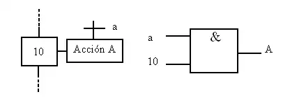 La ejecución de la acción se produce cuando además de encontrarse activa la etapa a la que está asociada, se debe verificar una condición lógica suplementaria (función Y):