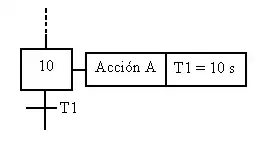 Es un caso particular de las acciones condicionadas que se encuentran en multitud de aplicaciones. En este caso, el tiempo interviene como una condición lógica más. En el siguiente ejemplo la acción A se realizará durante 10 segundos: