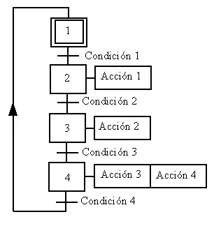 - El cumplimiento de una condición de transición implica la activación de la etapa siguiente y la desactivación de la etapa precedente.