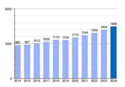 | Gráfica de evolución demográfica de Gabia Chica entre 2014 y 2024 |