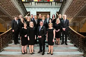Habrá diecinueve ministros en el gobierno. La coalición tendrá ocho ministros en el gobierno y los finlandeses fundamentales tendrán siete ministros. El RKP recibirá inicialmente tres ministros y el KD un ministro, pero los democratacristianos recibirán las tareas del ministro de Deportes, Deportes y Juventud durante los dos últimos años del mandato del gobierno.[6] Los demócratas cristianos nombraron a su propio candidato ministerial el sábado 17 de junio.[7] La Coalición y PS nombraron a sus ministros el domingo 18 de junio.[8][9] RKP nombró a sus ministros el lunes 19 de junio.[10]