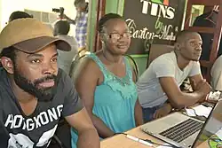 Afolayan (izquierda) en la audición para la película de terror Ojuju en 2013 | ||