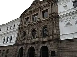 El primer paso fue la construcción de escuelas, porque la infraestructura de los primeros treinta años de vida republicana era insuficiente. Si bien el Gobierno conservador contó con más recursos gracias a la mayor eficiencia en el cobro de las aduanas y de los impuestos, el Ecuador seguía siendo un país pobre, hecho que condicionará permanentemente el proyecto modernizador. En todo caso y como ya hemos mencionado, la reforma educativa se aceleró entre 1869 y 1875, periodo en el que se consolidó un auténtico sistema público de enseñanza.[89] Su artífice demostró conocer las condiciones geográficas y socioculturales del país, así como las reales posibilidades de la burocracia educativa con la que contaba. Las limitaciones financieras y la necesidad de contar con maestros capacitados, dispuestos al sacrificio y leales a su proyecto político, llevaron al presidente a dirigir su mirada a la Iglesia y a Europa. García Moreno confió la educación primaria a los Hermanos de las Escuelas Cristianas; para la educación de la mujer gestionó la venida de la Congregación de los Sagrados Corazones.[90] Los jesuitas, por su parte, asumieron la responsabilidad de la educación secundaria; si bien García no había estudiado con ellos, su experiencia en Europa le había convencido de que la Compañía de Jesús ofrecía la más alta calidad de instrucción en el orbe católico. Las mermadas arcas del Estado solo permitieron establecer colegios dirigidos por la Compañía en Quito (desde 1869 llamado "San Gabriel"), Guayaquil ("San Vicente"), Riobamba ("San Felipe Neri") y Cuenca.[91] Otras capitales provinciales, como Ibarra, Latacunga y Loja, tuvieron que mantener sus centros con cuerpo docente seglar.
