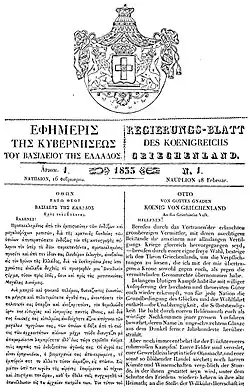 La Gaceta del Gobierno [1] (en griego: Εφημερίς της Κυβερνήσεως, Efimerís tis Kyverníseos) es el diario oficial del Gobierno de Grecia que enumera todas las leyes aprobadas en un período de tiempo establecido y que han sido ratificadas por el Gabinete y el Presidente. Se emitió por primera vez en 1833. Hasta 1835, durante la regencia en nombre del rey Otón I, la gaceta era bilingüe en griego y alemán.