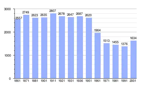 | Gráfica de evolución demográfica de Gadesco-Pieve Delmona entre 1861 y 2001 |