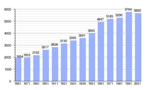 | Gráfica de evolución demográfica de Gagliano del Capo entre 1861 y 2001 |