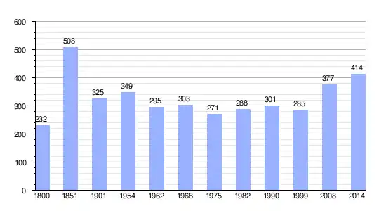 Los datos demográficos contemplados en este gráfico de la comuna de Gaillardbois-Cressenville[4] se han cogido de 1800 a 1999 de la página francesa EHESS/Cassini, y los demás datos de la página del INSEE.[5]