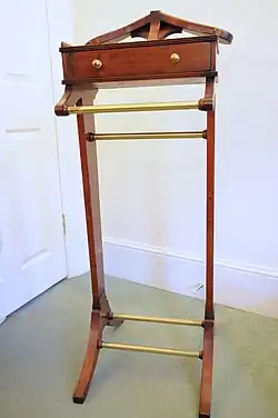 Galán de noche es un elemento de mobiliario en el que la ropa, particularmente trajes masculinos, se cuelga antes de ir a dormir para vestirse con el la mañana siguiente. Las características típicas incluyen: perchas para pantalones, percha para chaqueta, barras para zapato, y una bandeja para cartera y llaves. Algunos también tienen caja para joyas.