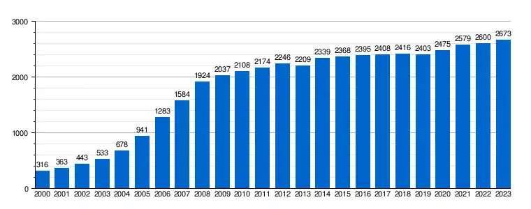 | Gráfica de evolución demográfica de Galápagos[5] entre 2000 y 2023 |