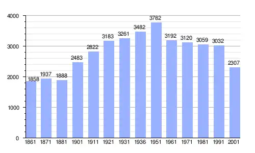 | Gráfica de evolución demográfica de Galatro entre 1861 y 2001 |