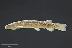 Es un pez bentopelágico de agua dulce que puede medir 8,2 cm de longitud, pero se han registrado especies de hasta 16,8 cm. Su nombre proviene de la forma aplanada de su cabeza, depressus. La especie suele presentar una especie de mancha o franja que pasa por la parte central del dorso y toma la aleta dorsal y el vientre. Presenta además tonalidades doradas y marrones a lo largo de su cuerpo. Se sabe que es muy similar en aspecto a otras especies.[4] Desova en primavera y sus huevos cuentan con un tamaño de 2 mm, los cuales son colocados en la parte inferior de las rocas y piedras de rápidos o ríos. Se estima que puede vivir hasta 8 años.[5]