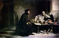 En este contexto, el cuadro histórico de Wilhelm Leopolski La muerte de Acerna (1865-7) se presenta tal como estaba previsto: una celebración del heroísmo específicamente polaco, visto a través de la lente de un poeta polaco, en una escena extraída del poema del mismo nombre de Władysław Syrokomla (1823-1862). Acerna, el poeta patriota polaco del siglo XVI, aparece en su lecho de muerte con actitud estoica.