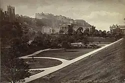 En la década de 1840 se pusieron en marcha planes para construir un nuevo edificio que acogiese a la RSA. William Henry Playfair fue el encargado de diseñar el nuevo edificio y el 30 de agosto de 1850 el príncipe Alberto puso la primera piedra. El edificio fue originalmente dividido por la mitad, con el ala este albergando las galerías de exhibición de la RSA y el ala oeste conteniendo la nueva Galería Nacional, formada con la colección de la Real Institución. En 1912 la RSA se trasladó al edificio de la Real Institución que sigue siendo conocido como el edificio de la RSA. En ese momento una nueva remodelación fue llevada a cabo por William Thomas Oldrieve. Cuando fue reabierta la galería albergaba de manera permanente la colección de arte tanto de origen escocés como procedente del resto de Europa.