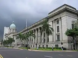 El antiguo edificio del Tribunal Supremo se construyó en el sitio del antiguo Grand Hotel de l'Europe, uno de los hoteles más palaciegos del sudeste asiático que se demolió en 1936. Diseñado por Frank Dorrington Ward, arquitecto jefe del Departamento de Obras Públicas, el antiguo edificio de la Corte Suprema fue construido para albergar las oficinas de la Corte Suprema y las salas de audiencias y se declaró abierto el 3 de agosto de 1939.[22]