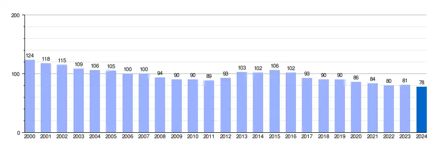 La población actual, según dato del INE[15] 2024, es de 78 habitantes, de ellos 43 varones y 35 mujeres. En verano y otros periodos vacacionales la población puede llegar incluso a triplicarse.