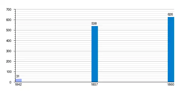 | Gráfica de evolución demográfica de Gama[2] entre 1842 y 1860 |