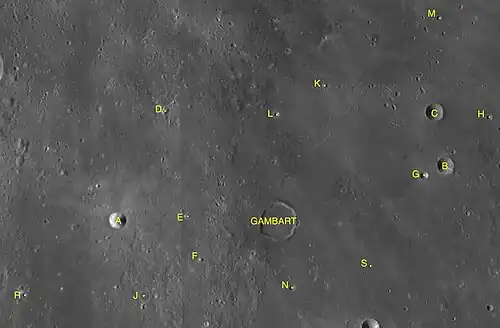 Por convención estos elementos son identificados en los mapas lunares poniendo la letra en el lado del punto medio del cráter que está más cerca de Gambart.