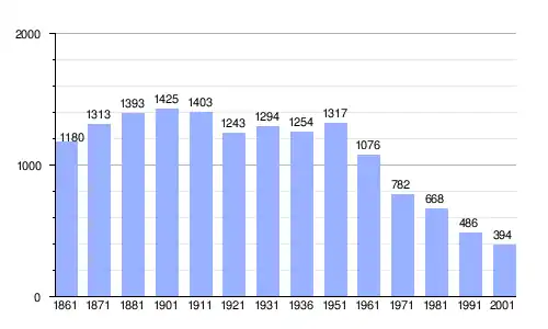 | Gráfica de evolución demográfica de Gamberale entre 1861 y 2001 |