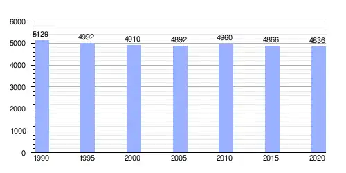 | Gráfica de evolución demográfica de Gammelstaden entre 1990 y 2020 |
