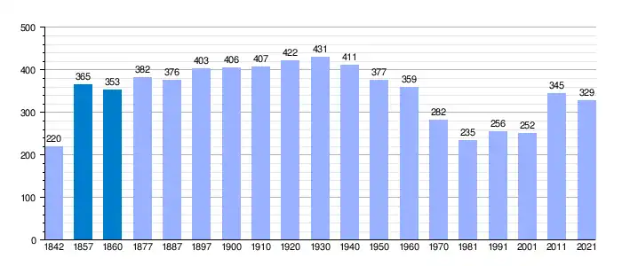 | Gráfica de evolución demográfica de Garay[3] entre 1842 y 2021 |
