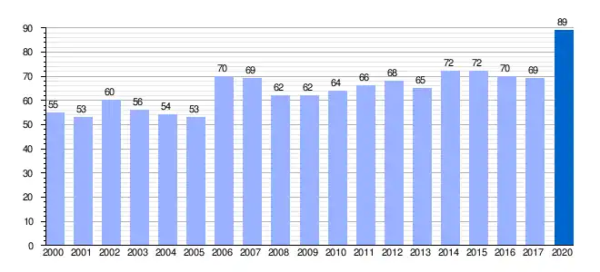 | Gráfica de evolución demográfica de Gardélegui entre 2000 y 2020 |