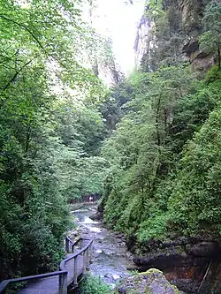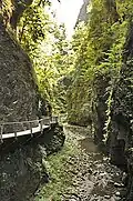 El desfiladero está preparado para la visita turística en una longitud de algo más de 2 km. Un recorrido habilitado mediante pasos en la roca y puentes permite la visita. Destacan las altas paredes repletas de cuevas por las que, en muchas ocasiones, surgen vías de agua formando cascadas.