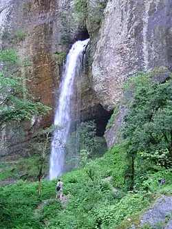 La garganta es un estrecho desfiladero abierto en la piedra caliza repleta de cuevas, grutas y cascadas. En el mismo, el río va recibiendo aportes de corrientes subterráneas provenientes del sistema kárstico de Larra como el río San Jorge que surge en Ilamina o el río San Martín. [1]