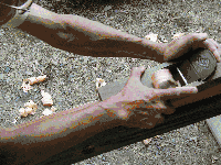 Al cepillar "a contrapelo", las fibras de madera son levantadas por el hierro cepillado, lo que da como resultado un acabado dentado, llamado "arranque".