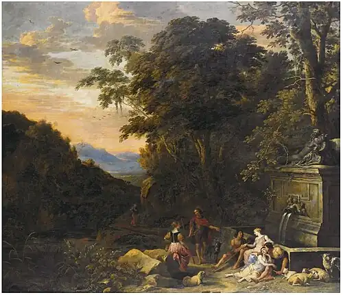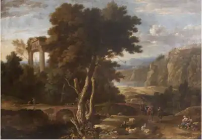 - ↑ Gaspar de Witte, A Landscape with Travellers Stopping to Rest by a River at Sotheby's