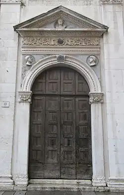 La competencia que se desarrolló rápidamente entre Cairano y los expertos del estudio Sanmicheli es evidente en las obras de arte y su secuencia cronológica.[89] Habían sido las principales personalidades artísticas de la ciudad al menos desde el comienzo de la construcción de Santa Maria dei Miracoli y terminaron suplantados por el surgimiento del nuevo maestro escultor.[90] El primer testimonio documental de la compañía de los hermanos Sanmicheli, Bartolomeo y Giovanni, originarios de Porlezza en el lago de Como, aparece en la década de 1480 en Verona ;[91] a finales de siglo, habían obtenido importantes encargos en varias ciudades del norte de Italia.[note 21]