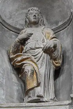 Una fuerte competencia similar se estableció muy probablemente entre Gasparo Cairano y Antonio della Porta (Tamagnino), que debutó en Brescia (en términos documentales) junto a Cairano con su ciclo de doce ángeles para la primera cúpula de Santa Maria dei Miracoli, entre el 24 de diciembre de 1489 y el 3 de mayo de 1490.[3] No está claro qué llevó a este artista milanés a Brescia. Pertenecía a una familia de escultores, y entre 1484 y 1489 se sabe que trabajó en Milán y Pavía para los Sforza, en estrecho contacto con Giovanni Antonio Amadeo.[100][101] Sin embargo, su debut como escultor figurativo en Santa Maria dei Miracoli se debe a los Sanmicheli, que se especializaron normalmente en el campo de la escultura decorativa y carecieron de ella. Hay que tener en cuenta que el propio Gasparo Cairano también apareció por primera vez en la escena artística como escultor figurativo bajo los Sanmicheli:[102] creó su secuencia de doce Apóstoles en el mismo proyecto.