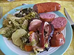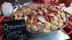 La gastronomía alsaciana (Cuisine alsacienne en francés); Elsässisch küche en alsaciano) incorpora tradiciones culinarias francesas y germánicas y está marcada por el uso de carne de cerdo en diversas formas. La región también es conocida por su vino y cerveza. Se trata de una de las cocinas regionales de Francia más ricas, donde los platos son abundantes y con porciones generosas. De hecho, un proverbio alsaciano dice así: «En Alemania, es mucho, pero no es bueno. En Francia, es bueno, pero no es mucho. En Alsacia, es bueno y es mucho».[2]