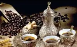 El café asirio tradicional se hace en Jezve de bronce grande (que está cubierto con imágenes asirias) y se sirve como endulzado, similar al café turco.[10] El café turco, que es un remanente de los tiempos otomanos, a menudo se usa de la misma manera, aunque con un toque de adivinación llamado finjan, que es una forma de tasseografía. Cuando se consuma el café, el adivino mirará el fondo de la taza y le leerá su futuro.