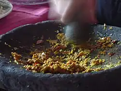 El arroz es el ingrediente principal, que casi siempre se consume acompañado de verduras, carnes y mariscos, siendo muy utilizados el cerdo, el pollo, las frutas y las verduras. Sin embargo, como ocurre con todos los hindúes, la carne de vacuno nunca o muy raramente se consume.[4]