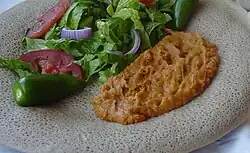 Los platos principales son los tsebhis (estofado) servidos con injera/taita (pan plano elaborado de teff, trigo, o sorgo), y hilbet (pasta elaborada con legumbres, principalmente lentejas, habas).