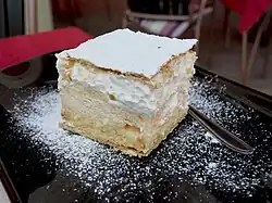 - ↑ Sylvia P. Onusic (24 de enero de 2013). «Bled Cream Cake- Kremna rezina -“Kremsnita”». Taste of Slovenia (en inglés). Consultado el 28 de abril de 2018.