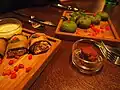 | Nigvziani badriyani (ნიგვზიანი ბადრიჯანი) | Berenjena frita laminada rellena con una "salsa" de nueces y especies | Guria e Imericia |