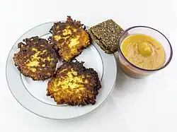 Esta comida es típica de ferias, fiestas y mercados del país, especialmente en invierno. Es un pastel de papa, huevos, harina y cebolla, y especiado con perejil picado. A veces se le añade ajo y nuez. Toda la masa se fríe y se sirve acompañada de salchicha ahumada.