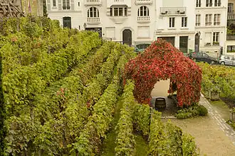 Existe, sin embargo, un viñedo dentro de la ciudad: el Viñedo de Montmartre (Clos-Montmartre), situado en la ladera norte de la colina de Montmartre. El vino de Montmartre ya se producía en el siglo X[15] y desde 1934 se celebra el Festival de la vendimia de Montmartre (Fête des vendanges de Montmartre). Tradicionalmente, el vino parisino proviene de los viñedos de Montmartre; fuera de la ciudad destacan los de Saint-Germain-en-Laye y Argenteuil.