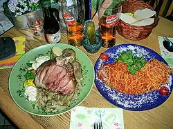 • naleśniki - similar a los crepes, y rellenado muy similar a los "pierogi", a veces algo curados, pero se pueden tomar con requesón y/o fruta, y opcionalmente coronado con crema y azúcar.
