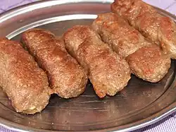 Las carnes son muy abundantes en la cocina Serbia y rumana, y existen diferentes formas de mostrarse en los platos. Es muy popular asada en las barbacoas, generalmente picada a veces en forma de hamburguesa (pljeskavica) o en las muy populares ćevapčići (o chiftele en rumano) (una especie de albóndigas), o los kebaps (ražnjići), las vešalica, que son tiras asadas de carne, las mućkalica (también llamado mici) (tripas asadas a la barbacoa). Algunas preparaciones complicadas como el Karađorđeva šnicla (chuleta de ternera rellena de kajmak, una especie de producto lácteo), o los famosos sarma (carne picada envuelta en hojas de col fermentada, pero también de vid, o acelgas y entonces se comen con yogúr natural) influencia del Imperio otomano, o bien como los Wiener schnitzel y el gulash (serb.: gulaš) lo pueden ser del mismo Imperio austrohúngaro, mezcladas con pasta como el paprikaš. Es frecuente encontrar carnes curadas o ahumadas o en forma de embutidos como las chorizos (kobasica).