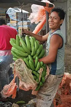 Por ejemplo, el plátano verde o macho, su forma de cocinarlo, y su uso como acompañamiento en platos de arroz es una herencia claramente africana, que se ve reflejada también en diversas gastronomías caribeñas. Un platillo popular de plátano macho es el mogo mogo, conocido en el Caribe como fufú; otros platos de plátano son los tostones, los molotes, las tortitas o gorditas de plátano y frijol.[17] También el uso de la hoja de banana para envolver y cocer alimentos.[18]