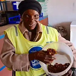 Un manjar de la gastronomía de Zimbabue son las orugas mopane (Gonimbrasia belina), que se hierven y se sirven con vegetales y sadza.